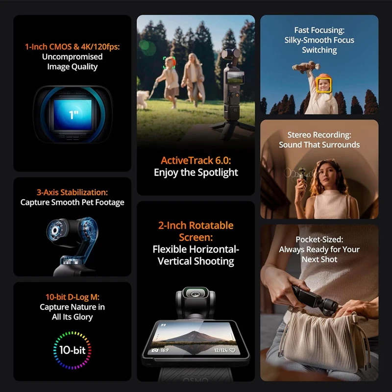 【Powerful 1-Inch Sensor】Broad CMOS sensor and 4K/120FPS [1] UHD footage captures experiences in dynamic, bubble smooth detail.